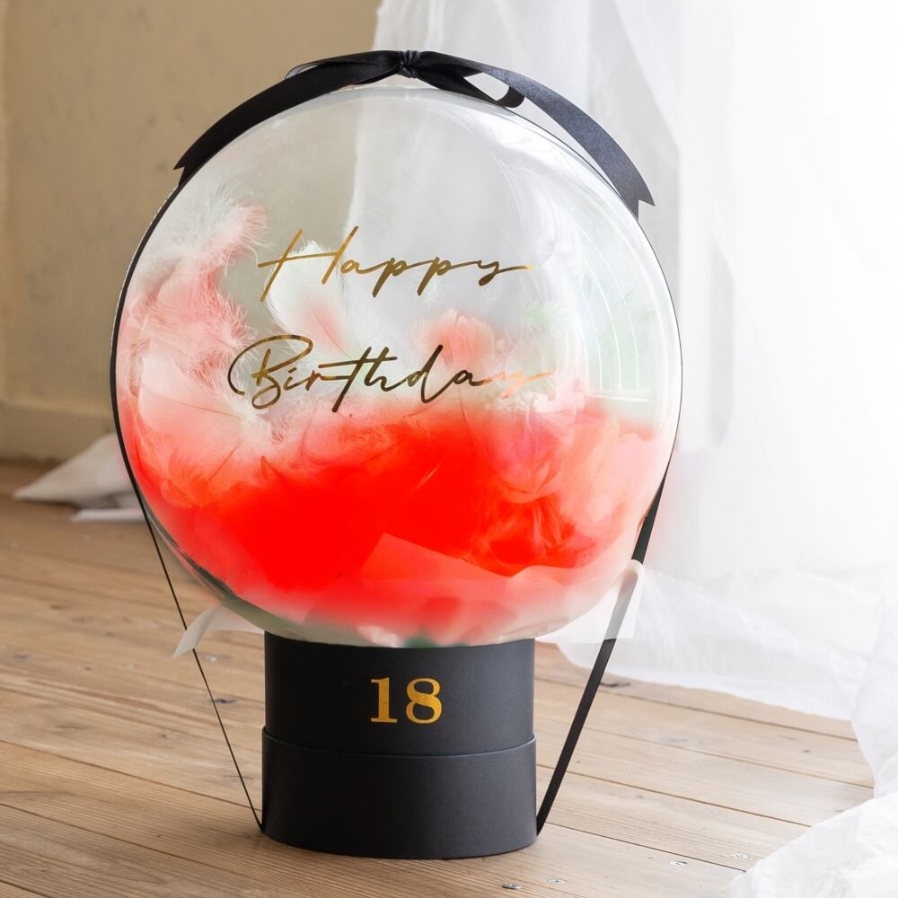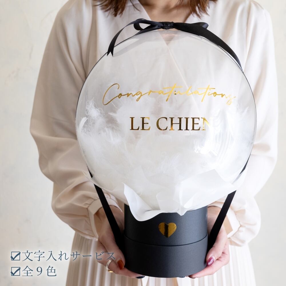 透明のバルーンの中にフェザーがたっぷり入った
