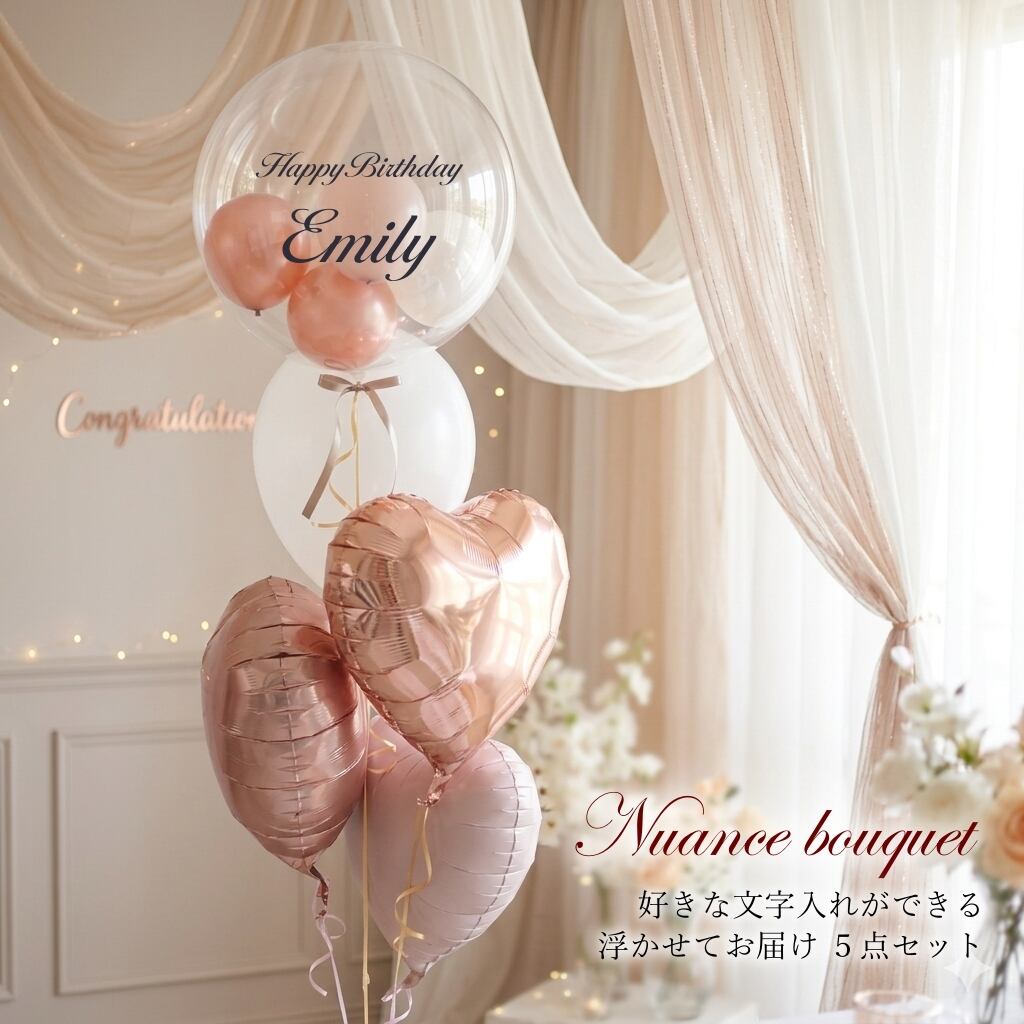 トップのクリアバブルバルーンにはお好きな文字入れができる