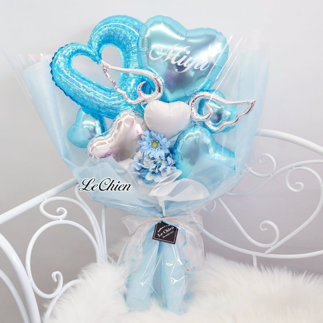 オープンハート、天使の羽、お名前入りバルーンと